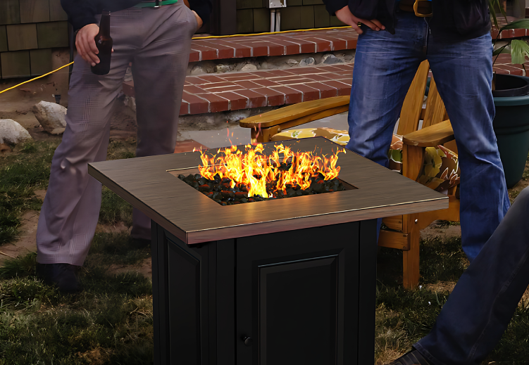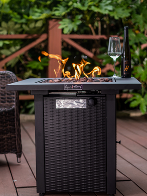 28 In Gas Fire Pit - Brushed Yellow Wood with Black Base