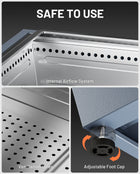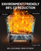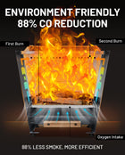 ​​Smokeless fire pit with enhanced airflow system. Double-wall venting feeds oxygen from below, enabling clean secondary combustion—85% less smoke than conventional fire pits.​