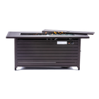 The Legacy Heating Rectangular Fire Pit Table with Cover is a versatile piece of patio furniture that you'll find yourself using all year round. The table frame is built from sturdy extruded aluminum, protected from the elements by an hammered black finish and designed with extruded aluminum bar look. A standard 20-lb. liquid propane tank (stored inside the table; tank not included)is all you need to produce up to 50,000 BTUs of warmth from the stainless-steel burner. A bag of clear fire glass is included to help conceal the burner and a matching extruded aluminum lid lets you use the surface as a table during warmer months. A weather-resistant cover is included for longer-term protection. Enjoy an elegant accent to your stainless steel burner, or cover the burner and have an attractive table to entertain your guests.Sit back, relax and enjoy time together with family and friends with the perfect propane fire pit table addition to the backyard, patio, deck, or fire pit table with auto-ignition conveniently conceals a standard 20-Lb propane tank (not included) within its base.