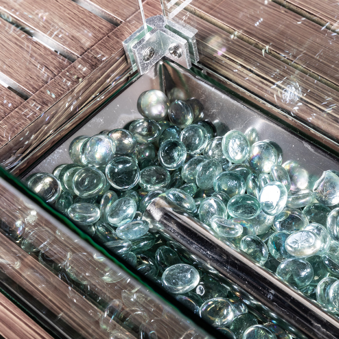 Rectangular Fire Pit Table With Stainless Steel Burner & Glass Wind Guard - Mocha